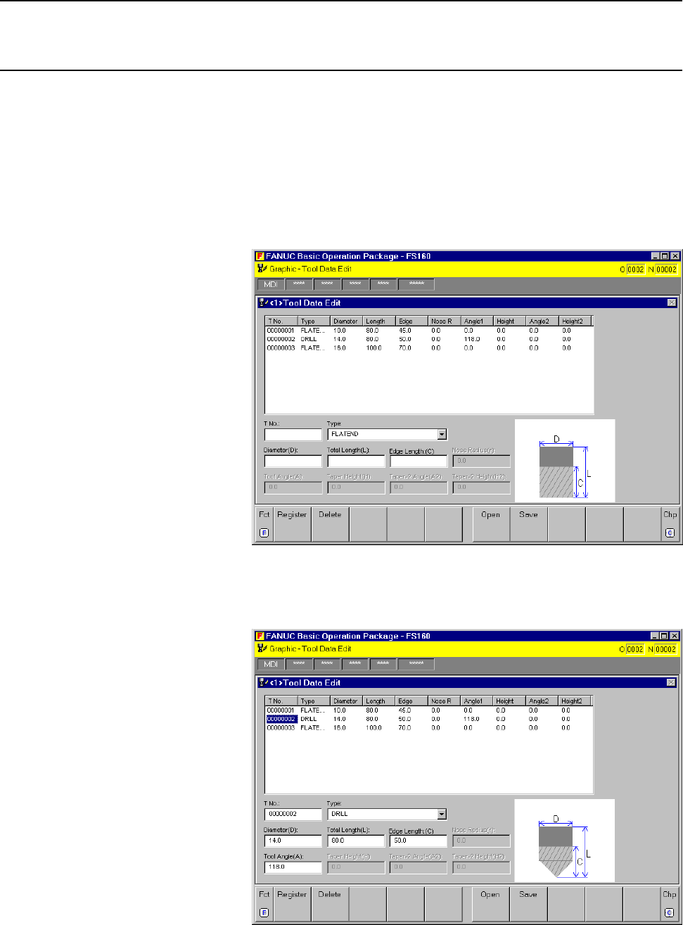 1. If the [Tool Data Edit] screen is currently not displayed, display the