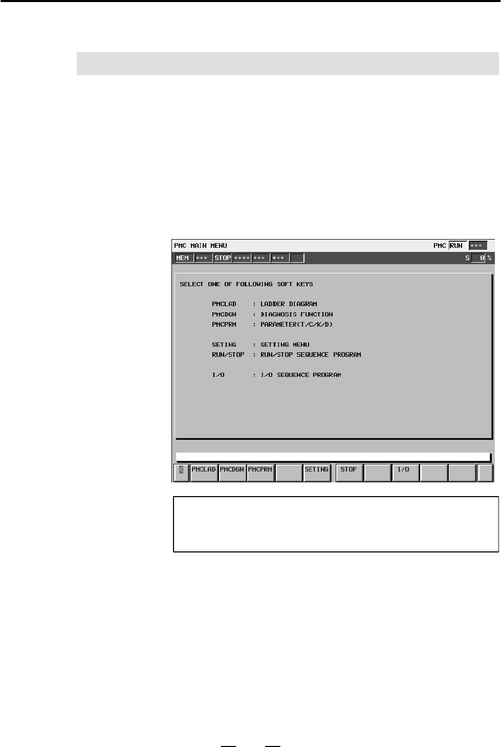 Press soft key [PMCLAD] at PMC Main Menu to reach the LADDER