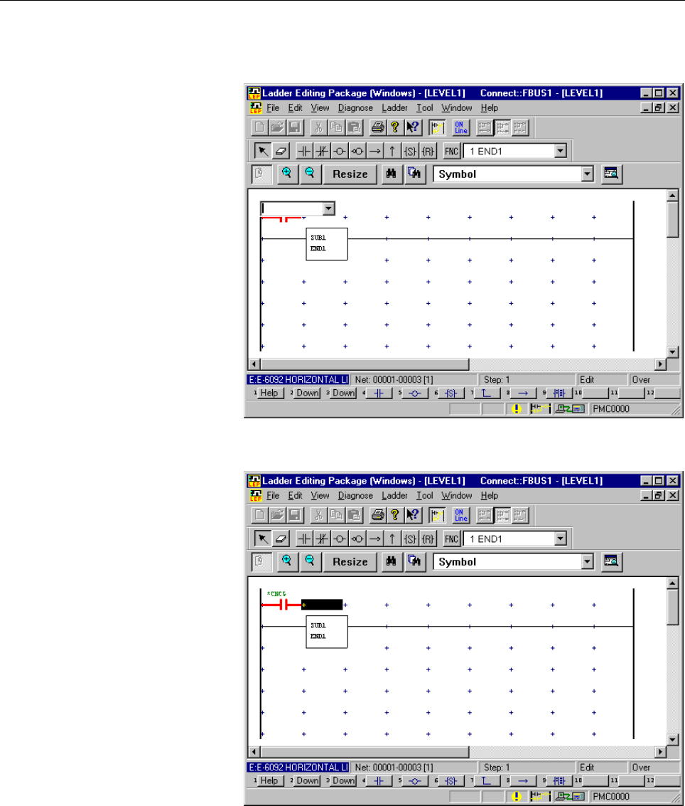 • Page 683.CREATING AND EDITING SEQUENCE PROGRAMS B-63484EN/05 2 Press the [Enter] key. (Alternatively, double-click the ladder you want to modify.) Fig. 3.3.4 (b) 3 Modify the ladder on the edit window. For an explanation of how to operate ladders on the edit window, see the subsections listed below: Table