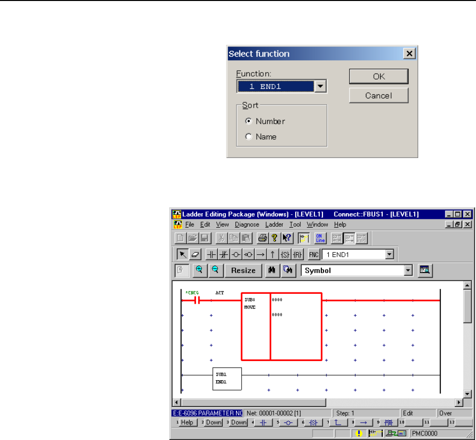 • Page 703.CREATING AND EDITING SEQUENCE PROGRAMS B-63484EN/05 3.3.5 Inserting Ladders from the Edit Window into a Ladder Program This subsection describes how to insert ladders from the edit window into a ladder program (on the display window). NOTE 1 If there is a ladder error in a ladder in the edit windo