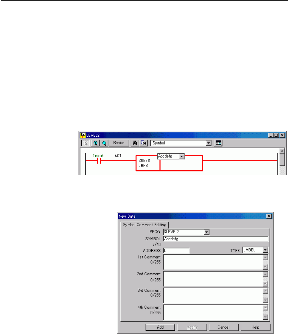 • You can input directly a symbol as the label of JMPB/ JMPC/
