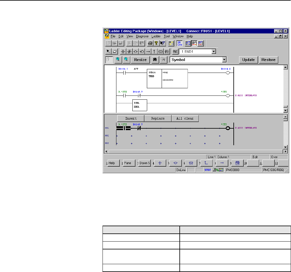 • Page 45B-63484EN/05 2.BASICS 2.3.3 Edit Toolbar The edit tool bar contains a set of buttons used for editing ladder diagrams. You can input contacts and coils by using the edit tool bar. 2.3.4 Soft Keys To perform operations with the currently selected child window, you can select the displayed soft keys e
