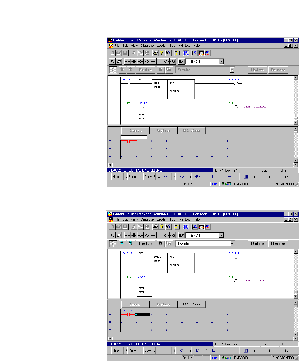 • Page 703.CREATING AND EDITING SEQUENCE PROGRAMS B-63484EN/05 3.3.5 Inserting Ladders from the Edit Window into a Ladder Program This subsection describes how to insert ladders from the edit window into a ladder program (on the display window). NOTE 1 If there is a ladder error in a ladder in the edit windo