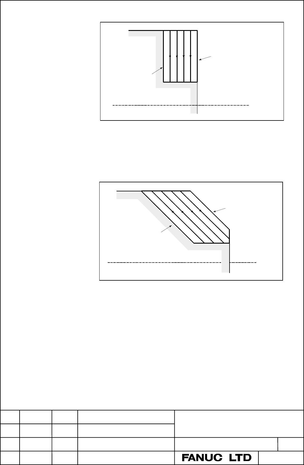 • Page 461! Face cutting cycle (G94) Shape of material Shape of product ! Face taper cutting cycle (G94) Shape of material Shape of product TITLE FANUC Power Mate 0 Operator’s Manual ADDITION OF CANNED CYCLE AND MULTIPLE REPETITIVE CYCLE DRAW.NO. CUST. 01 011129 New design B-63444EN/01-3 SHEET EDIT DATE DESIG