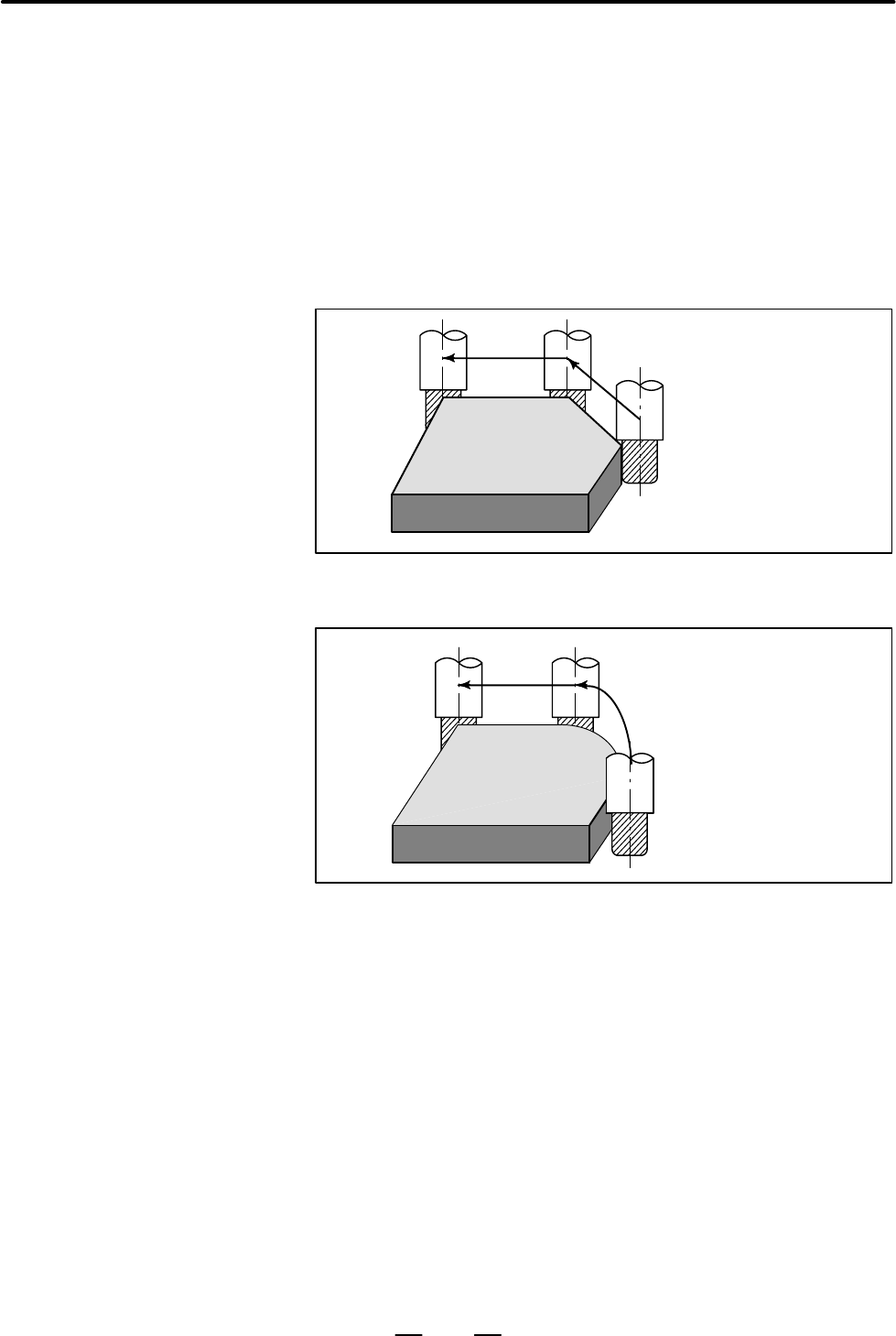 • Page 71B–63684EN/01 PROGRAMMING 5. FEED FUNCTIONS D Tool path in a cutting If the direction of movement changes between specified blocks during feed cutting feed, a rounded–corner path may result (Fig. 5.1 (b)). Y Programmed path Actual tool path 0 X Fig. 5.1 (b) Example of Tool Path between Two Blocks In