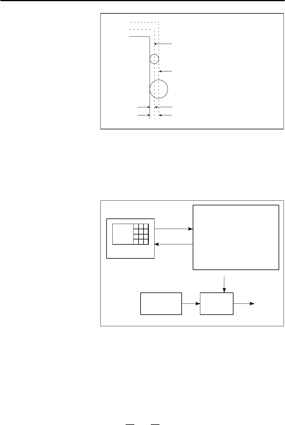 • Page 739B–63684EN/01 APPENDIX D. NOMOGRAPHS Analysis The tool path shown in Fig. D.1 (b) is analyzed based on the following conditions: Feedrate is constant at both blocks before and after cornering. The controller has a buffer register. (The error differs with the reading speed of the tape reader, number o