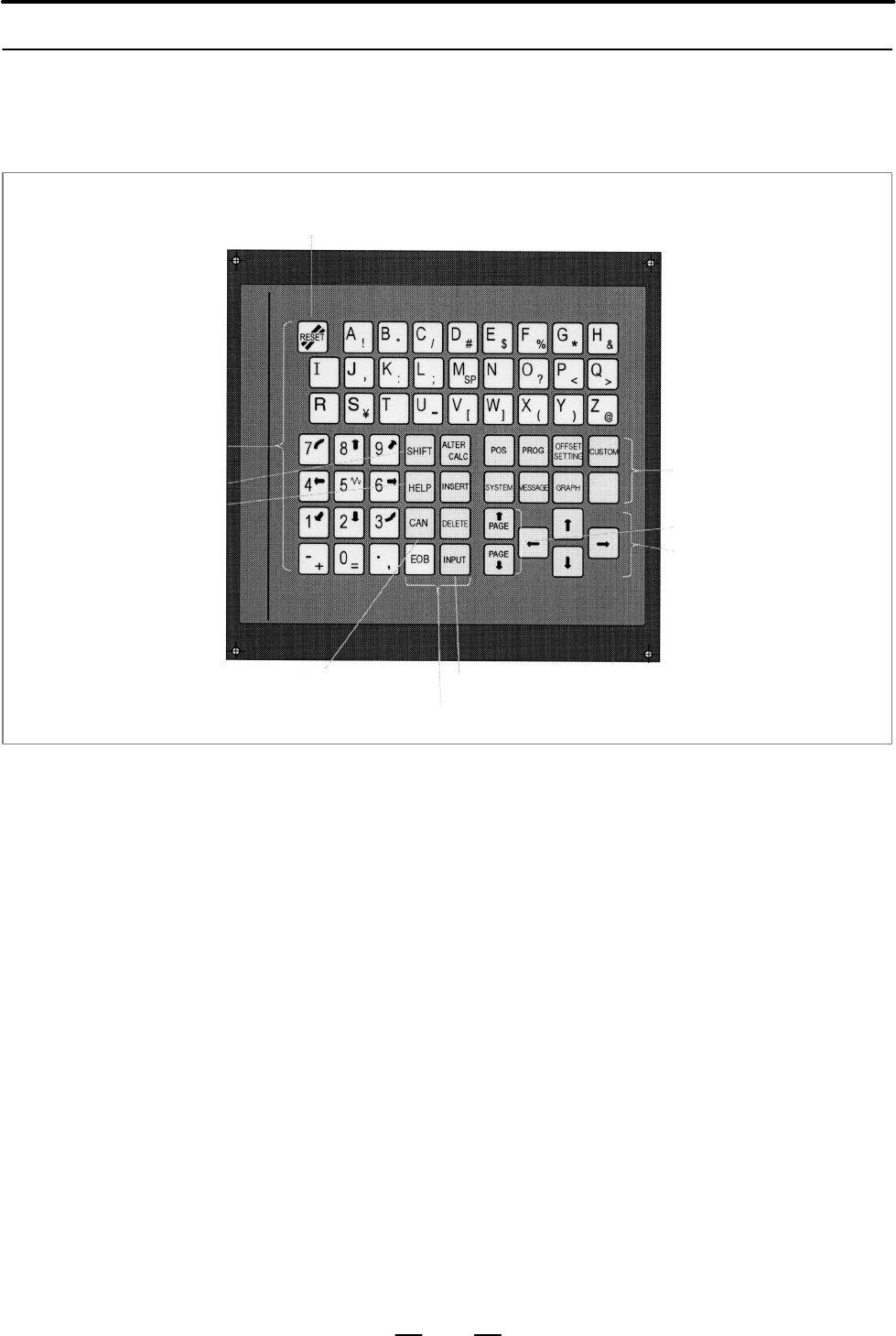• Page 703B–63684EN/01 OPERATION 13. HELP FUNCTION The current page No. is shown at the upper right corner on the screen. HELP (PARAMETER TABLE) 01234 N00001 1/4 * SETTEING (No. 0000∼) * READER/PUNCHER INTERFACE (No. 0100∼) * AXIS CONTROL /SETTING UNIT (No. 1000∼) * COORDINATE SYSTEM (No. 1200∼) * STROKE LIMI