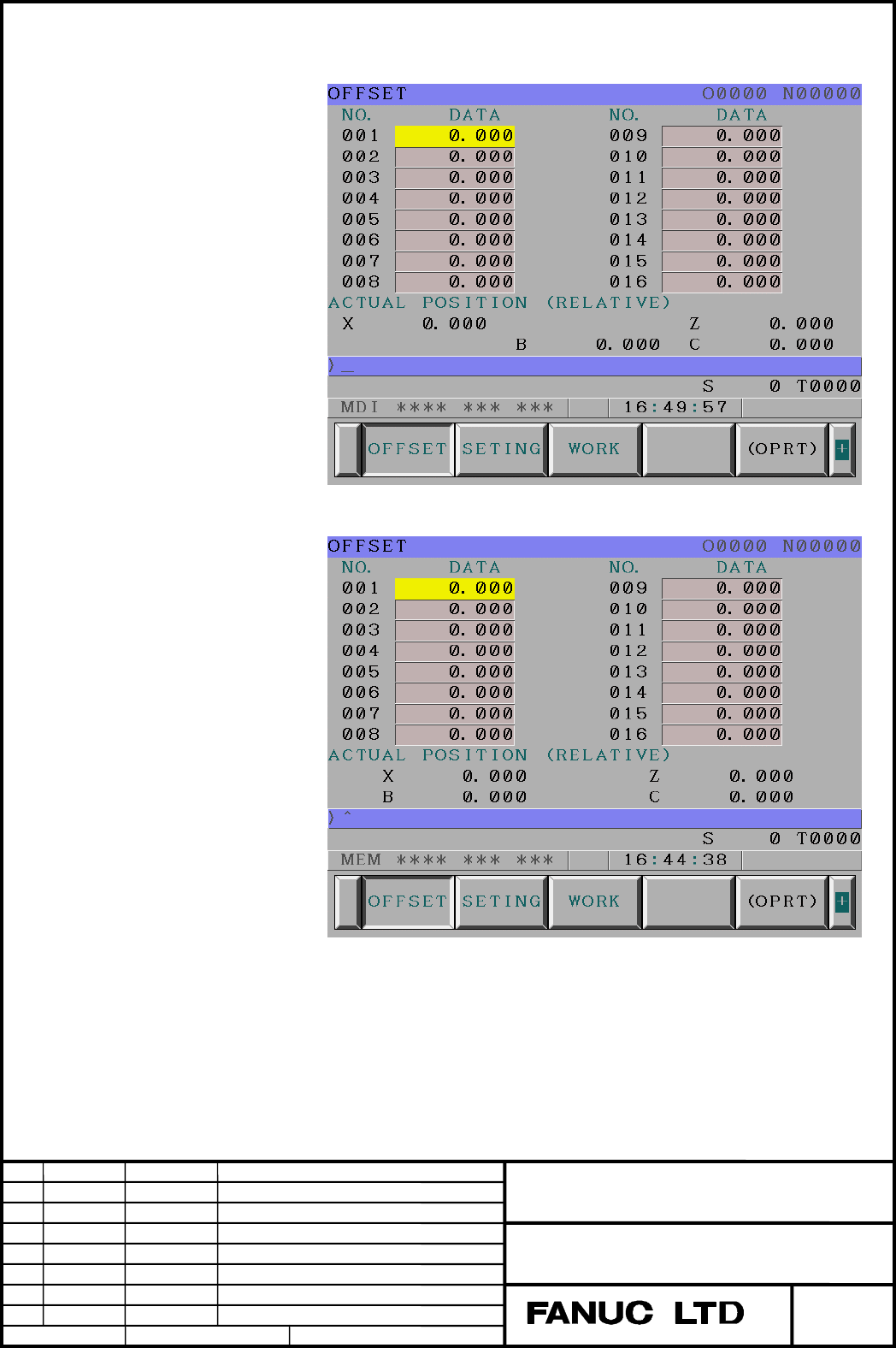 • Page 9(3) Offset [Usually display(No.13102#0="0")] [Top alignment display(No.13102#0="1")] Title FANUC Series 16i/18i/21i-B Drawing No. A-79605E Page Edit Date Signature Description 9/12 2002/08/29
