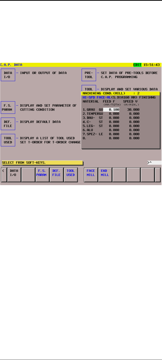 Pushing the Softkey (FACE MILL), the machining condition table