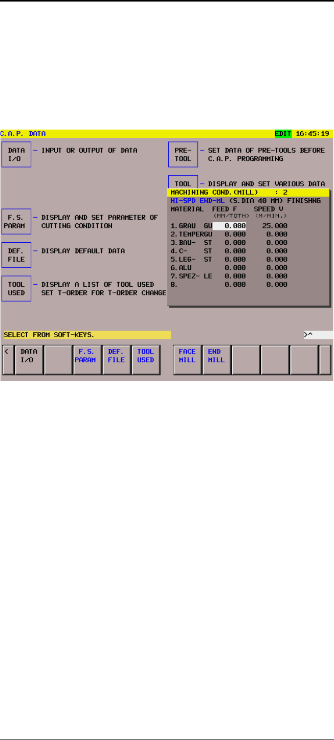 (END MILL) is selected. Pushing the softkey (END MILL), cutting