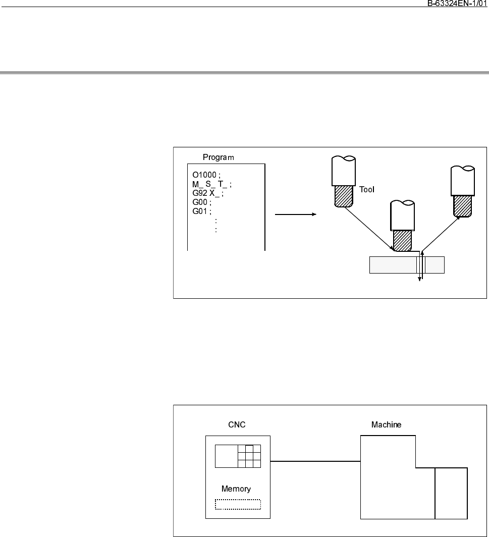 • Page 556B-63324EN-1/03 OPERATION 12.INPUTTING/OUTPUTTING DATA 12 INPUTTING/OUTPUTTING DATA Information written on floppy disks, NC tape, and memory cards can be loaded into the CNC, using the memory card slot or an external input/output unit such as the Handy File. Information can also be written to these m
