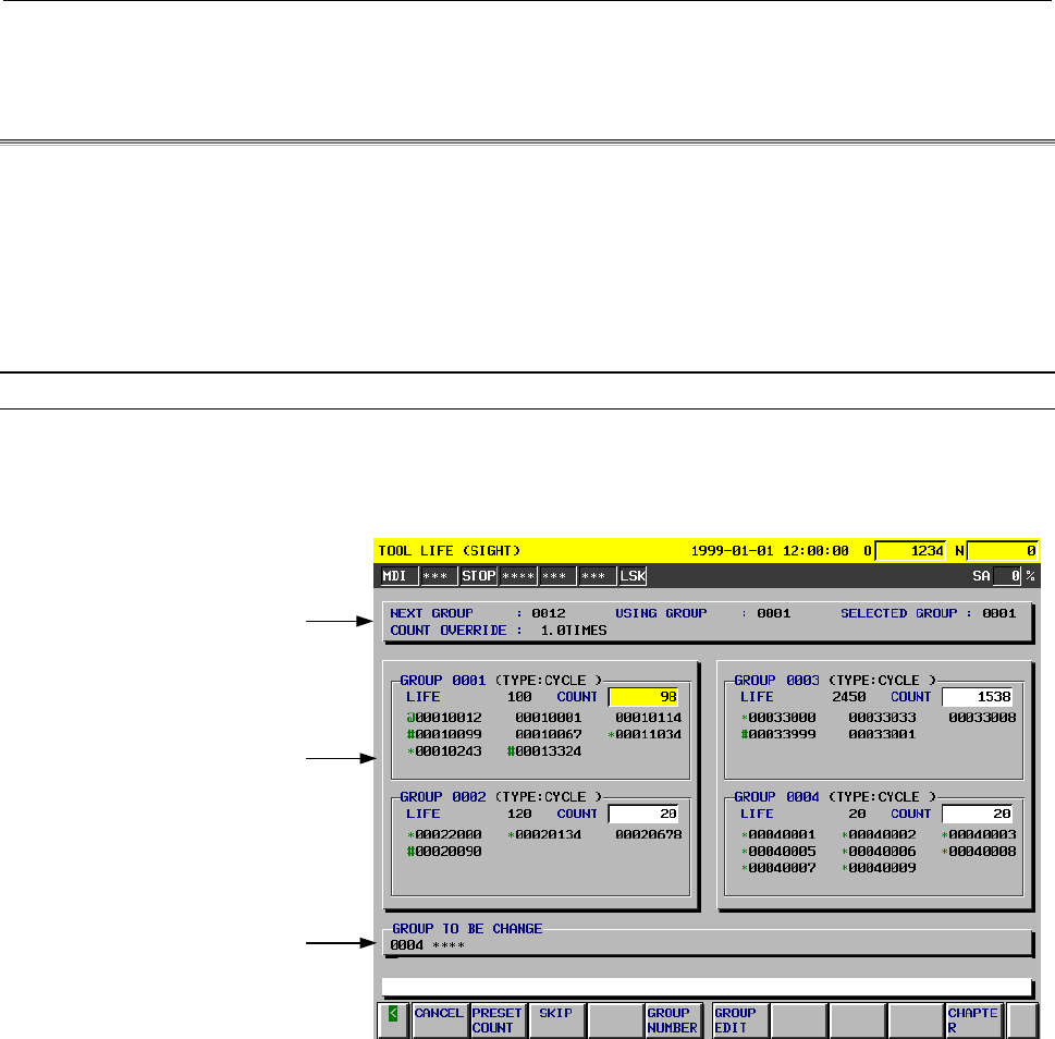 Next group used : Tool group number for which service life