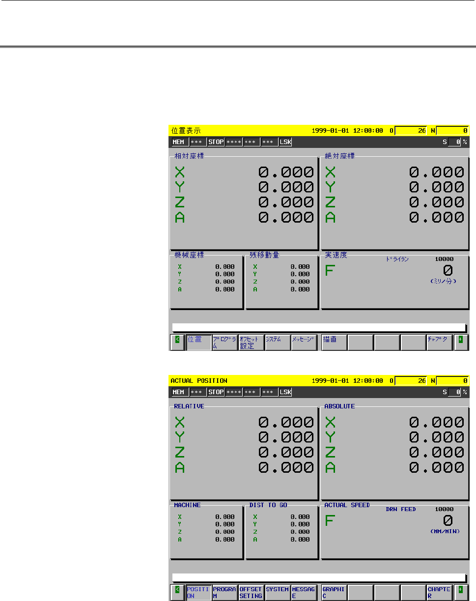 • Page 76B-63324EN-1/03 OPERATION 2.OPERATIONAL DEVICES 2.6 LANGUAGE SELECTION The Japanese, English, German, French, Italian, Spanish, and Swedish are prepared as display languages. Select the language to be displayed by parameters. Fig. 2.6 (a) Example of operation screen : JAPANESE Fig. 2.6 (b) Example of