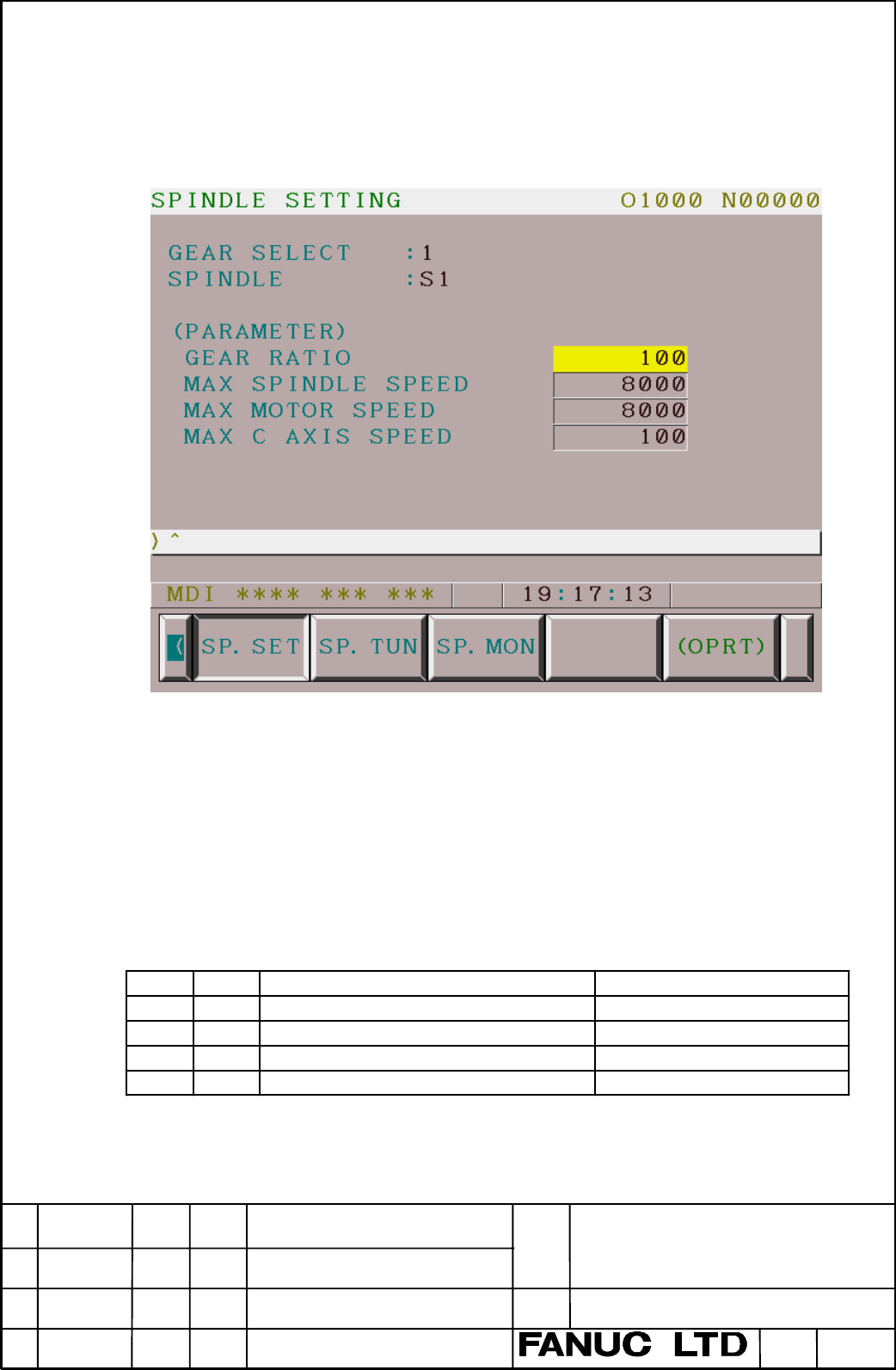by pressing the soft key “SP.SET” and can be switched to another spindle’s using page