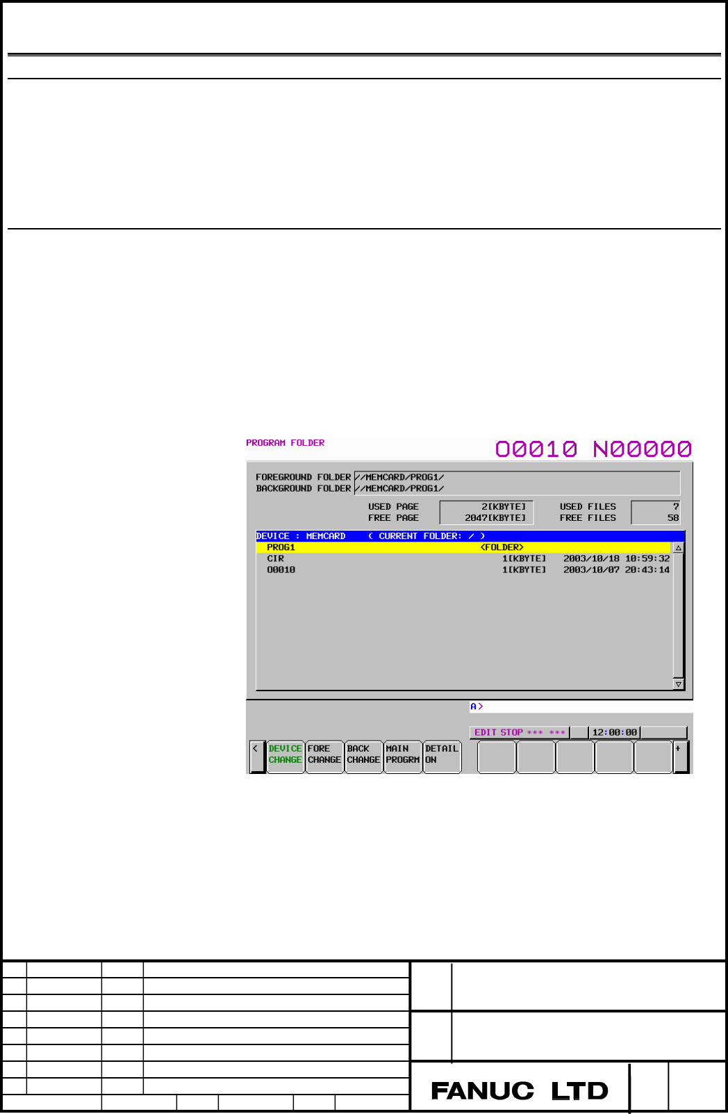 Page 3FANUC Series 30i-MODEL A Memory Card Program Operation/Editing Specifications FANUC Series 30i-MODEL A Title Memory Card Program Operation/Editing Draw A-79368E No. Edit Date Design Description page 1/12 Date Sep.11.’03 Desig. Apprv.