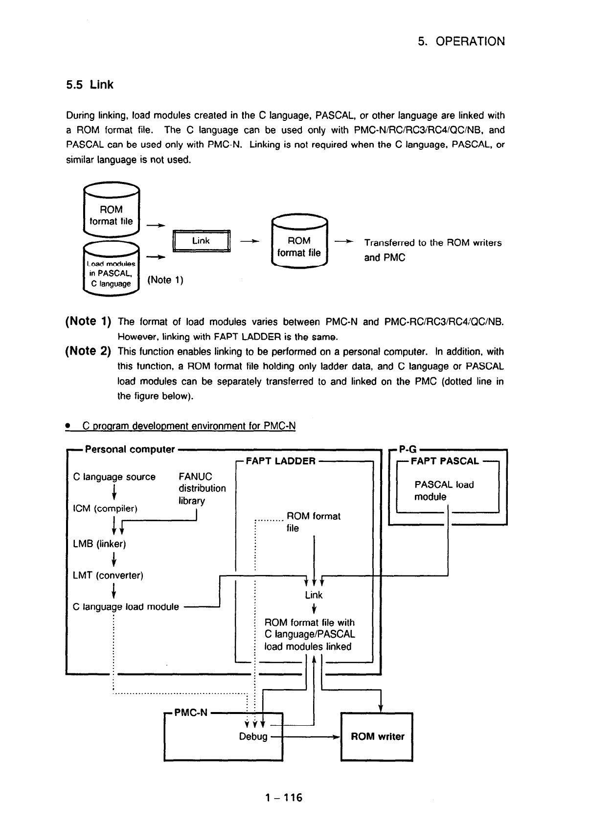 PASCAL can be used only with PMC-N. Linking is not required when the C language, PASCAL, or