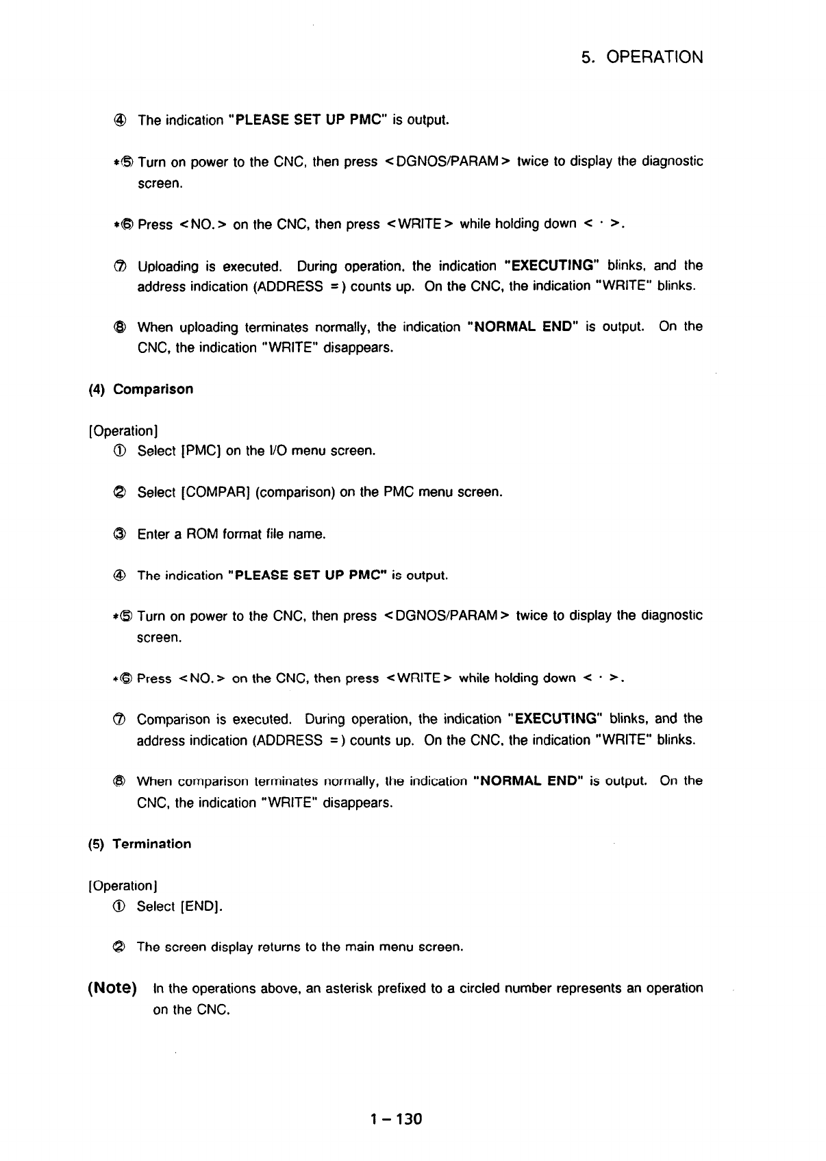 (Note) In the operations above, an asterisk prefixed to a circled number represents an operation