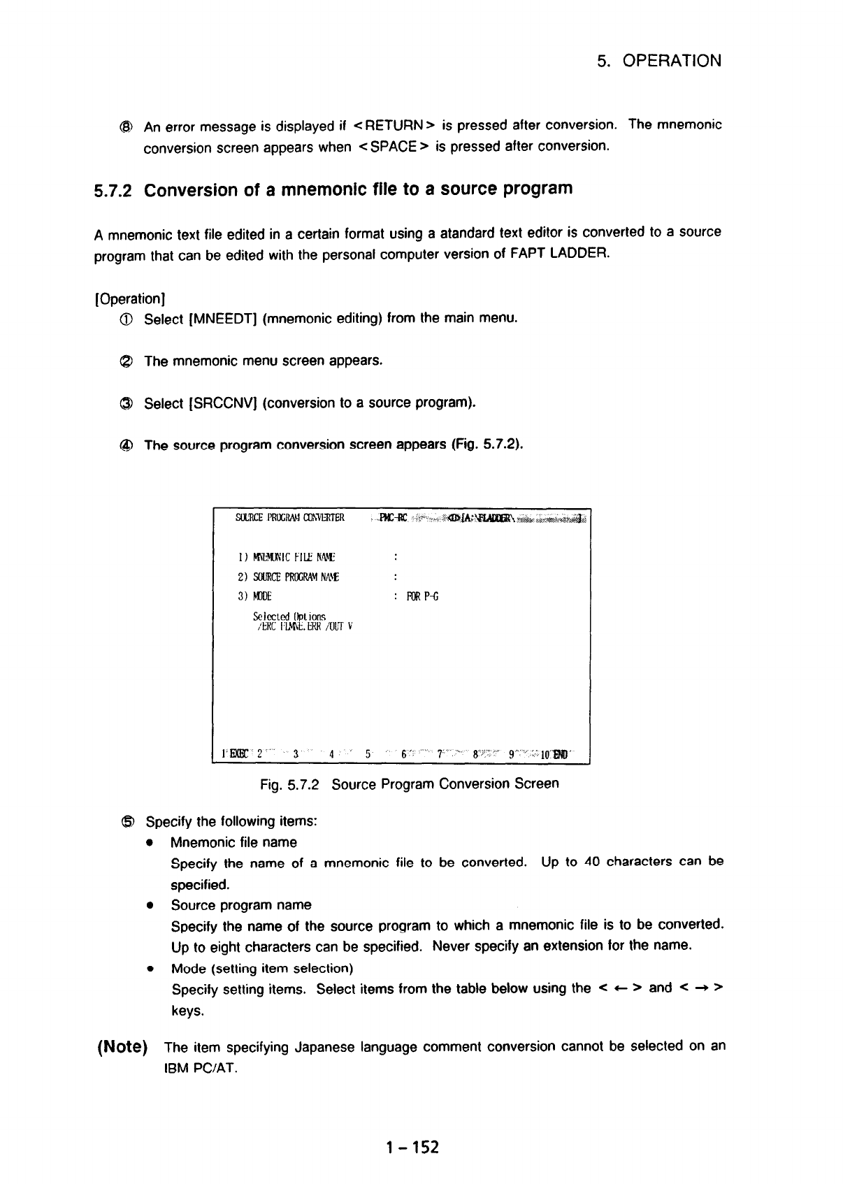 5.7.2 Conversion of a mnemonic file to a source program