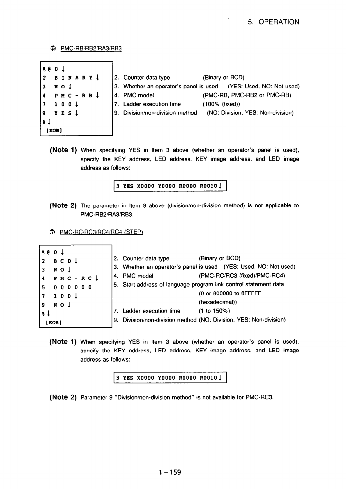 (Note 1) When specifying YES in Item 3 above (whether an operator’s panel is used),