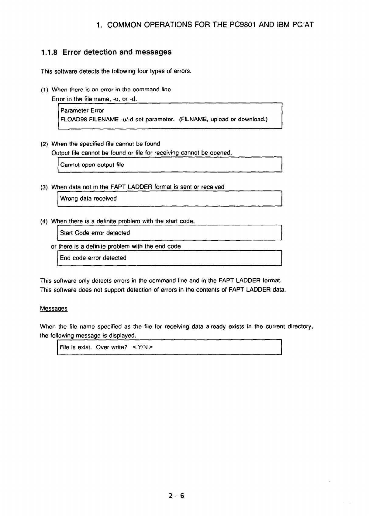 1 .1.8 Error detection and messages