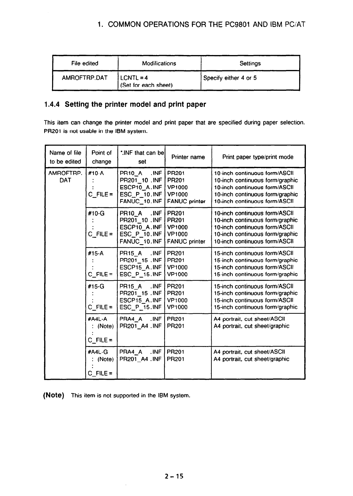 1. COMMON OPERATIONS FOR THE PC9801 AND IBM PCiAT