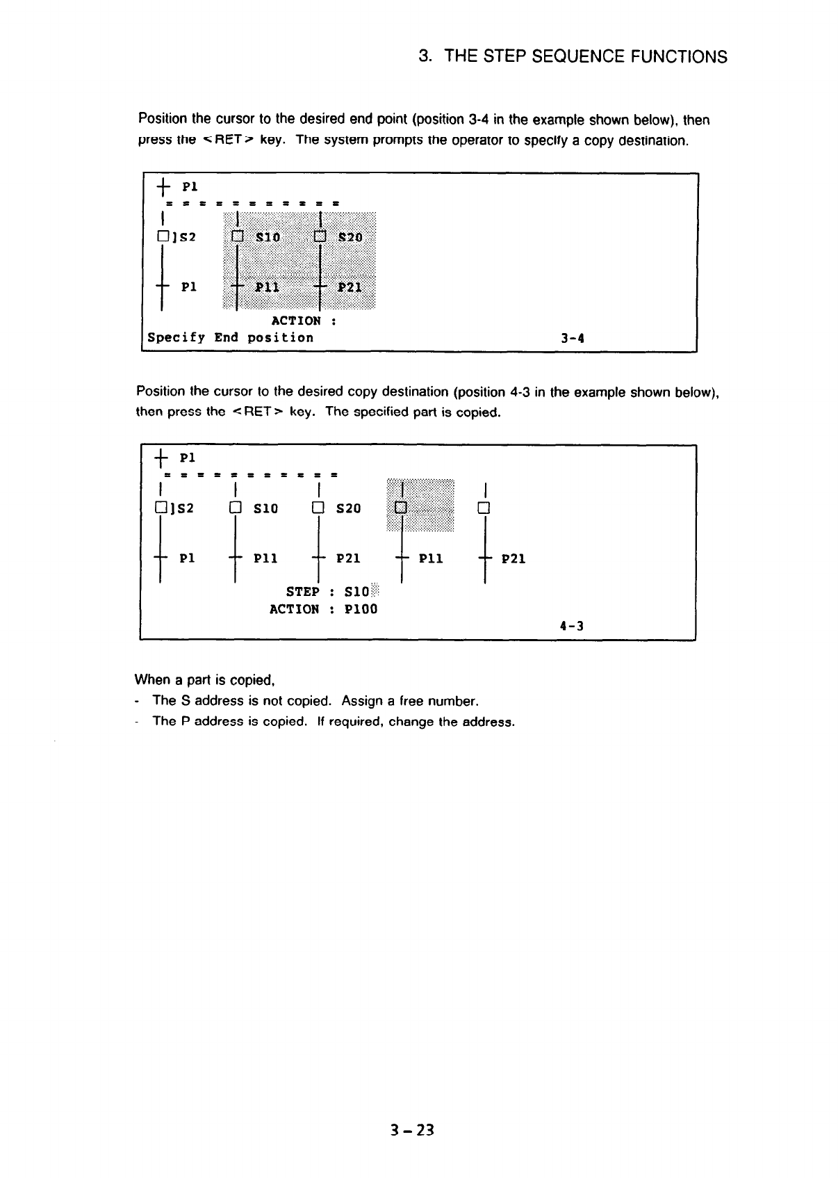 Position the cursor to the desired copy destination (position 4-3 in the example shown below),
