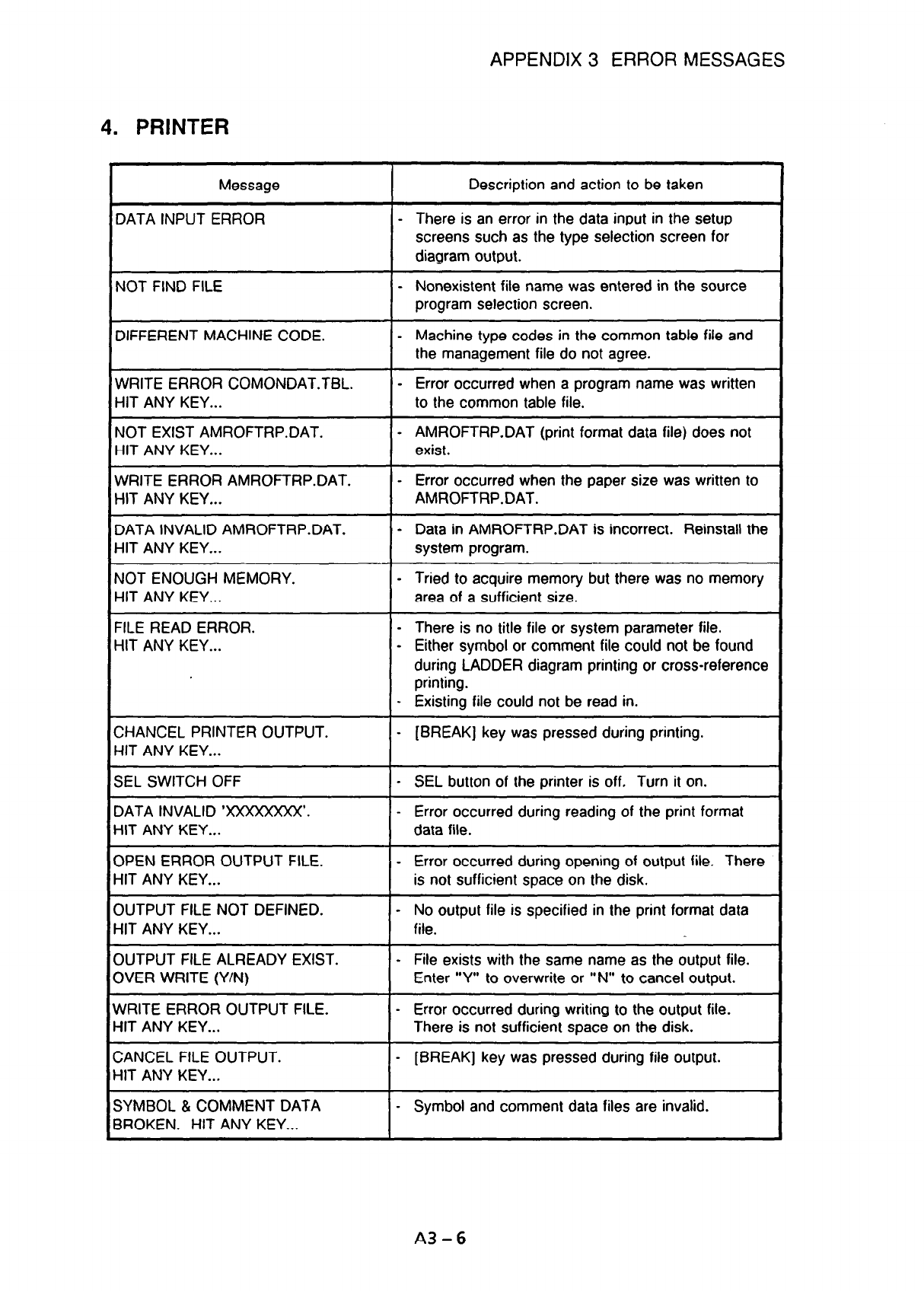 APPENDIX 3 ERROR MESSAGES