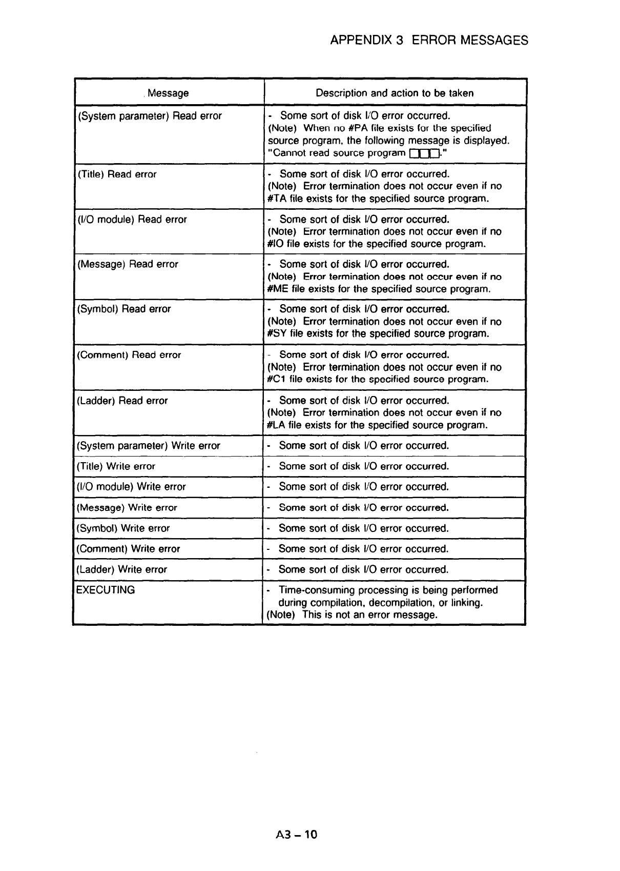 APPENDIX 3 ERROR MESSAGES