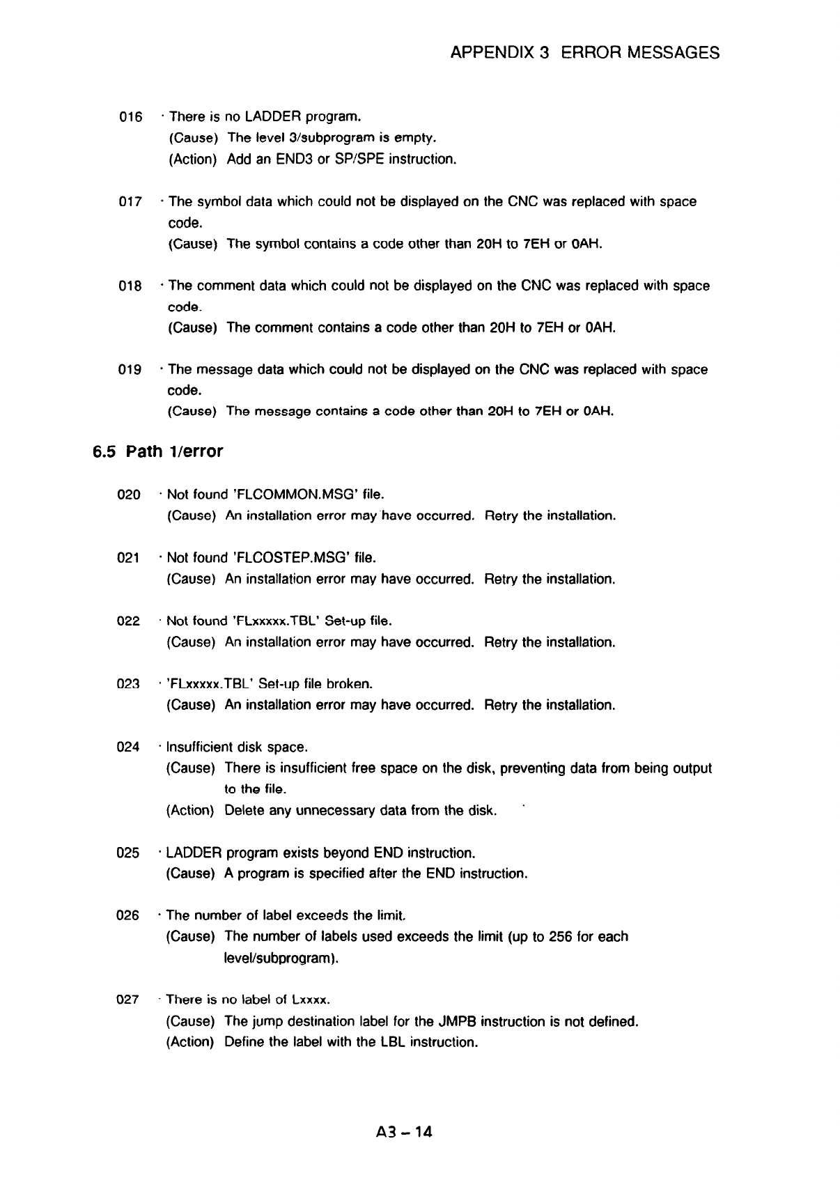 APPENDIX 3 ERROR MESSAGES