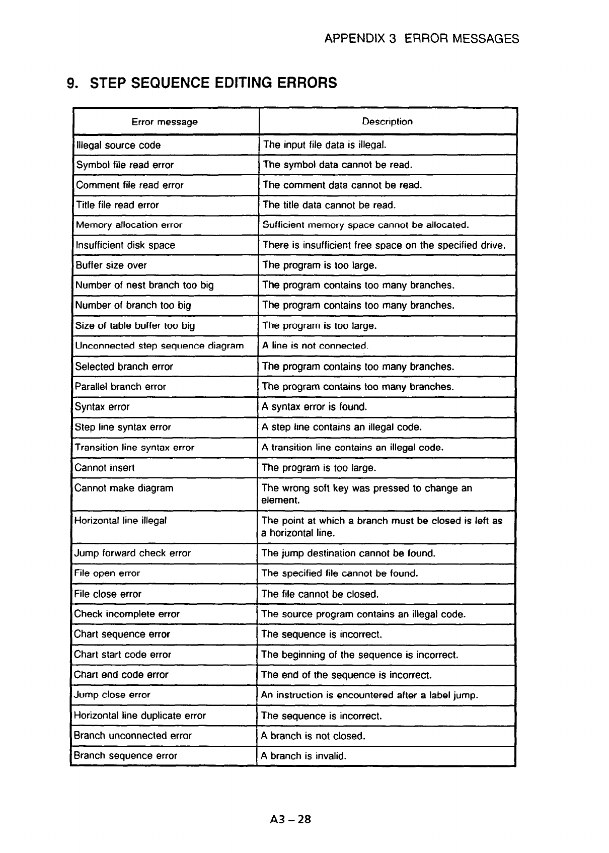 APPENDIX 3 ERROR MESSAGES