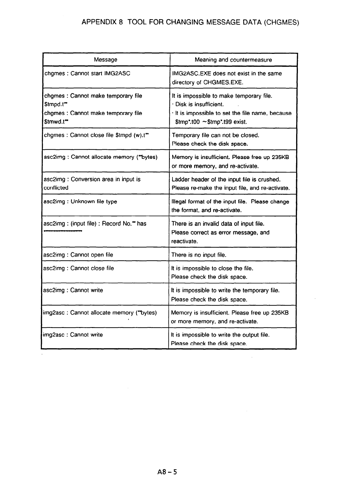APPENDIX 8 TOOL FOR CHANGING MESSAGE DATA (CHGMES)