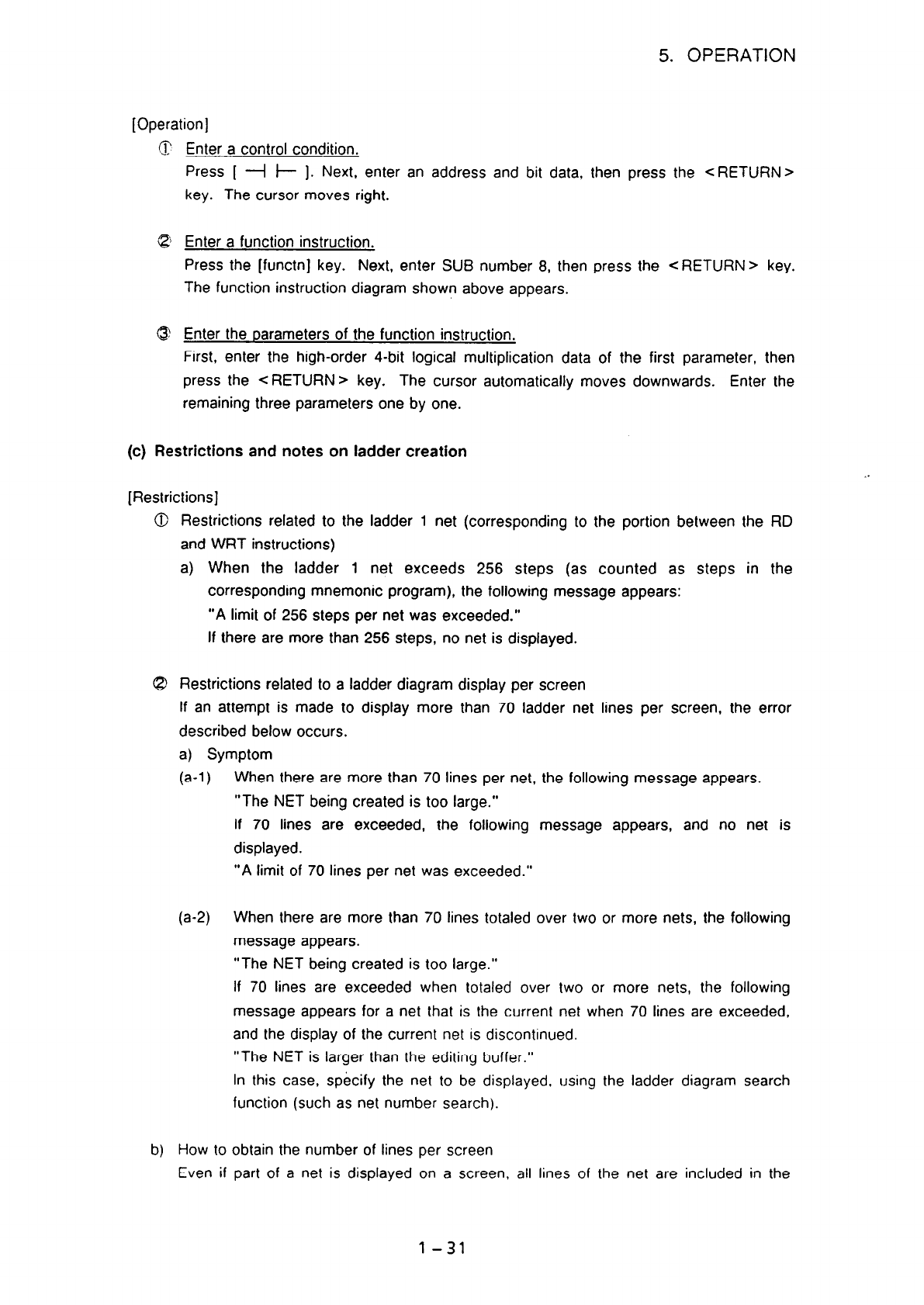 If an attempt is made to display more than 70 ladder net lines per screen, the error