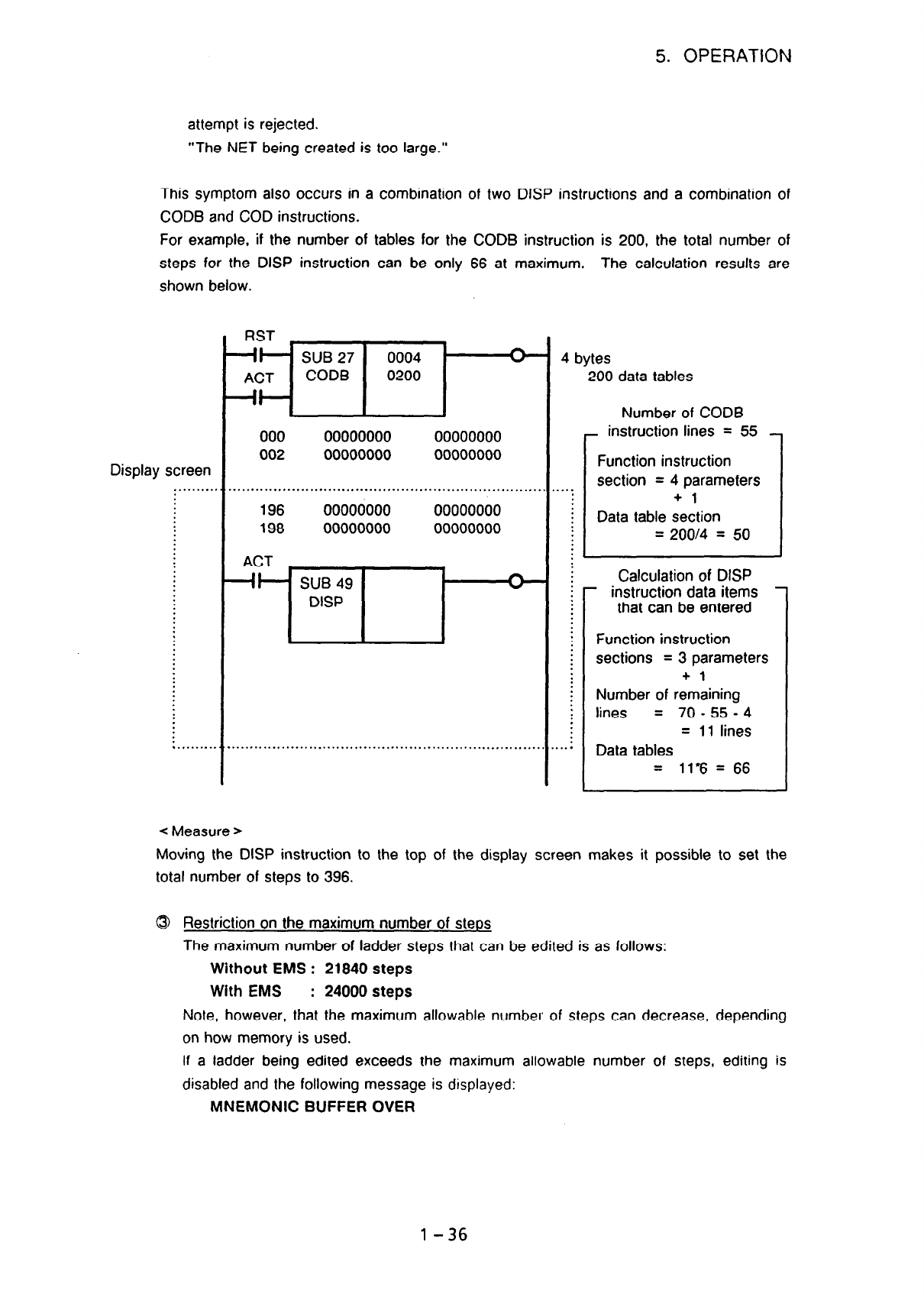 steps for the DISP instruction can be only 66 at maximum. The calculation results are