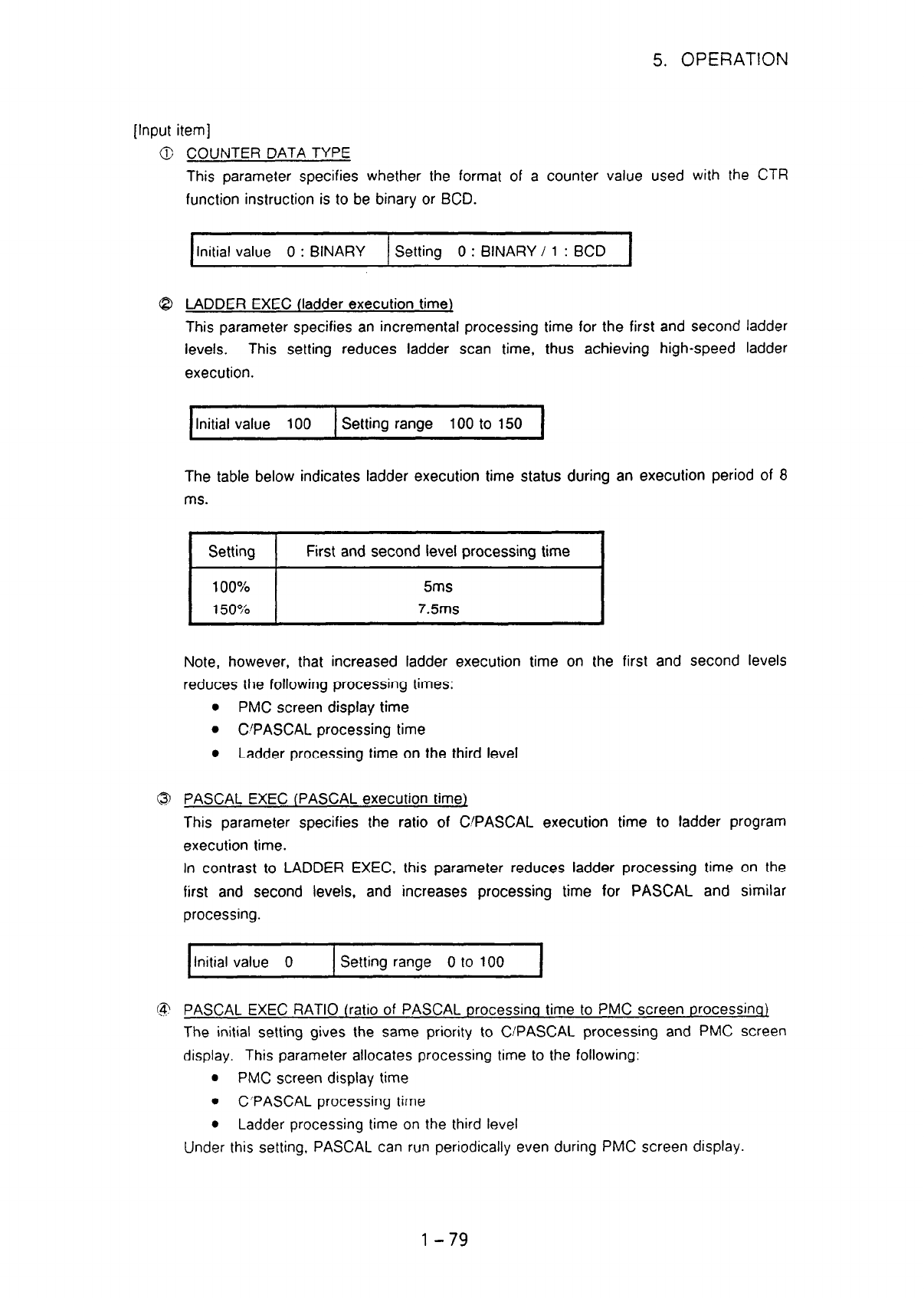 This parameter specifies the ratio of C/PASCAL execution time to ladder program