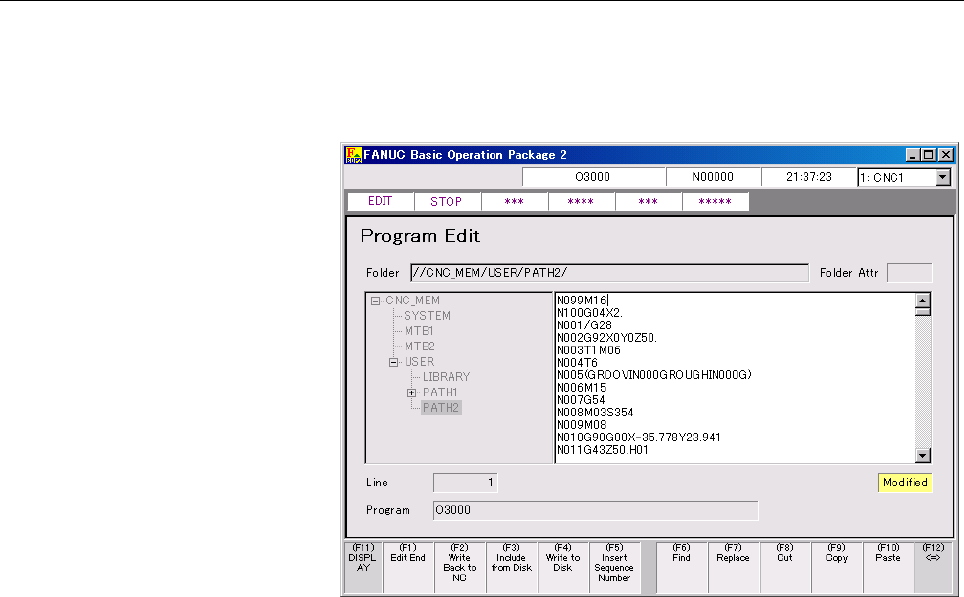 • Page 81B-63924EN/01 2.STANDARD OPERATION 2.3.3.6 Copying an NC program An NC program on the CNC can be copied to a specified folder. NOTE To copy an NC program, release the protection of the NC program. Moreover, set the following status: • Operation - EDIT mode Procedure 1 If the [Program Edit] screen is