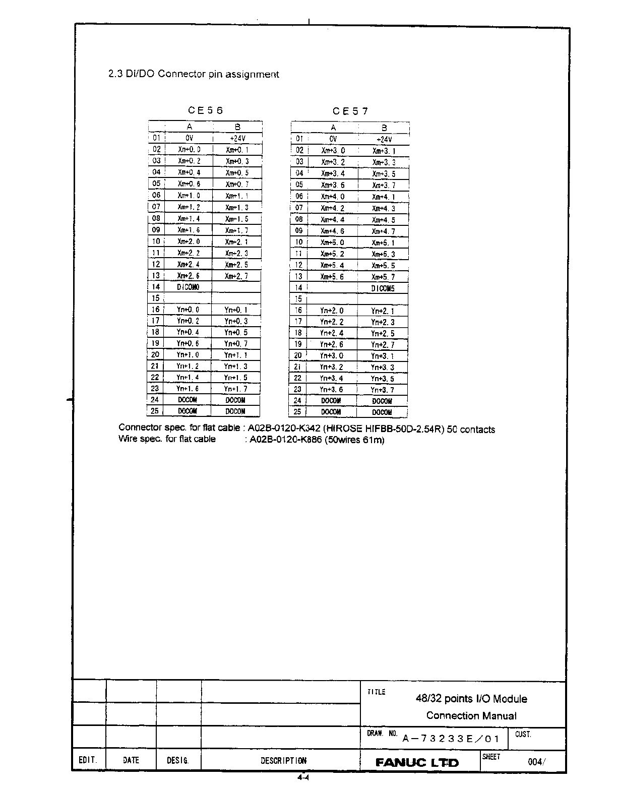 • Page 97SECTION 4: 48 / 32 POINTS I/O MODULE This section contains: • Drawing No. A-73233E/01 for I/O Modules: q A20B-2002-0520 (with MPG). q A20B-2002-0521 (without MPG). Note I/O points are not multiplexed.