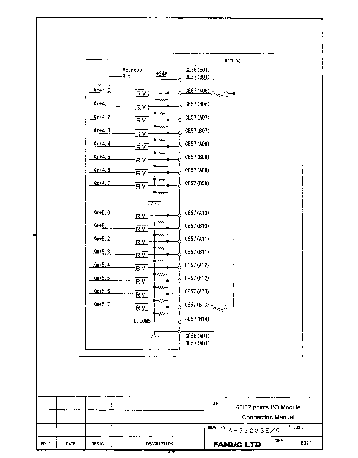 • Page 97SECTION 4: 48 / 32 POINTS I/O MODULE This section contains: • Drawing No. A-73233E/01 for I/O Modules: q A20B-2002-0520 (with MPG). q A20B-2002-0521 (without MPG). Note I/O points are not multiplexed.