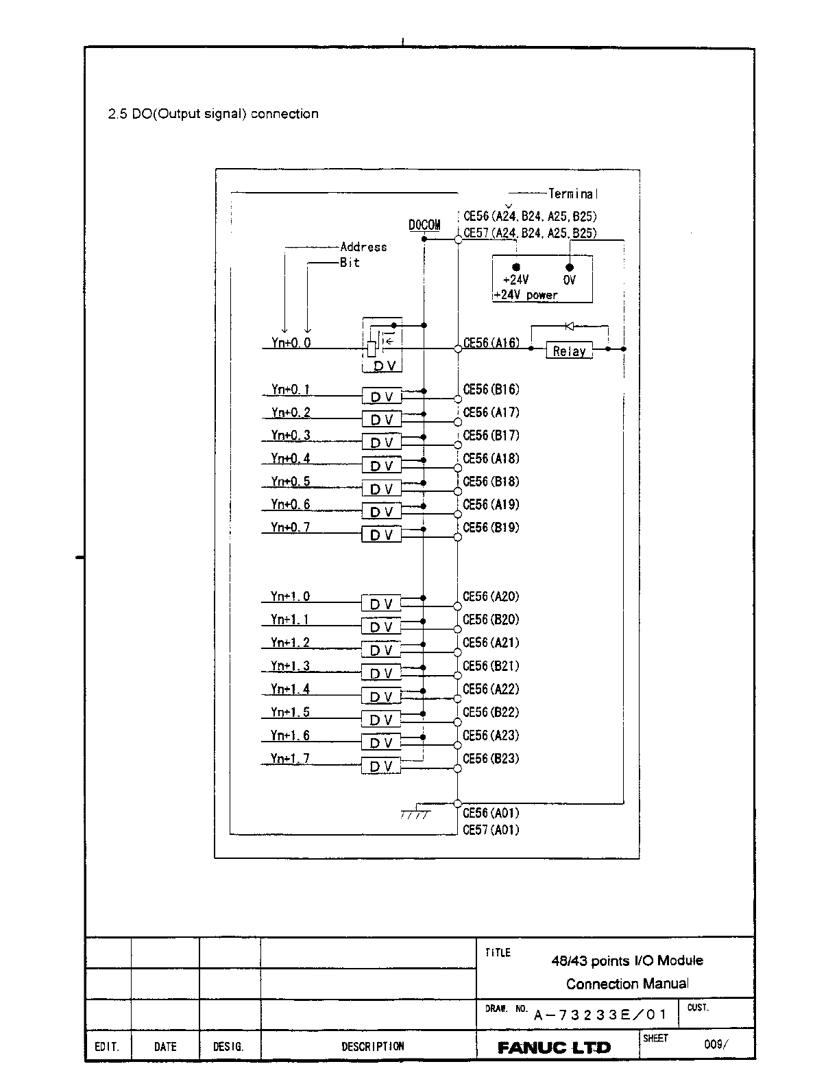 • Page 97SECTION 4: 48 / 32 POINTS I/O MODULE This section contains: • Drawing No. A-73233E/01 for I/O Modules: q A20B-2002-0520 (with MPG). q A20B-2002-0521 (without MPG). Note I/O points are not multiplexed.