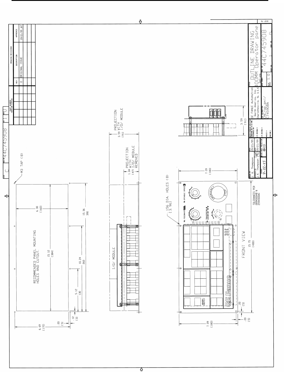 • Page 73SECTION 3: 72 IN / 56 OUT CONNECTION UNIT This section contains: • Drawing A-71199E/03 for Operator Panel Connection Unit A20B-2002-0470. Note Inputs are multiplexed. This panel must be ordered separately for use with all GE Fanuc North American i Series Operator Panels.