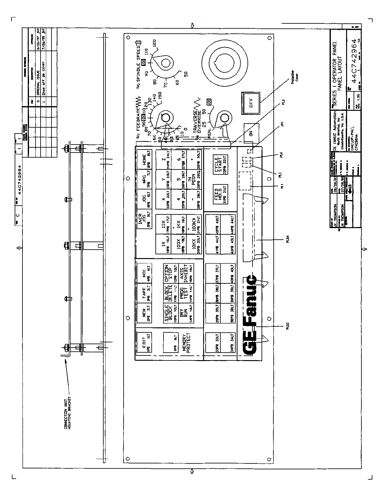 • Page 73SECTION 3: 72 IN / 56 OUT CONNECTION UNIT This section contains: • Drawing A-71199E/03 for Operator Panel Connection Unit A20B-2002-0470. Note Inputs are multiplexed. This panel must be ordered separately for use with all GE Fanuc North American i Series Operator Panels.