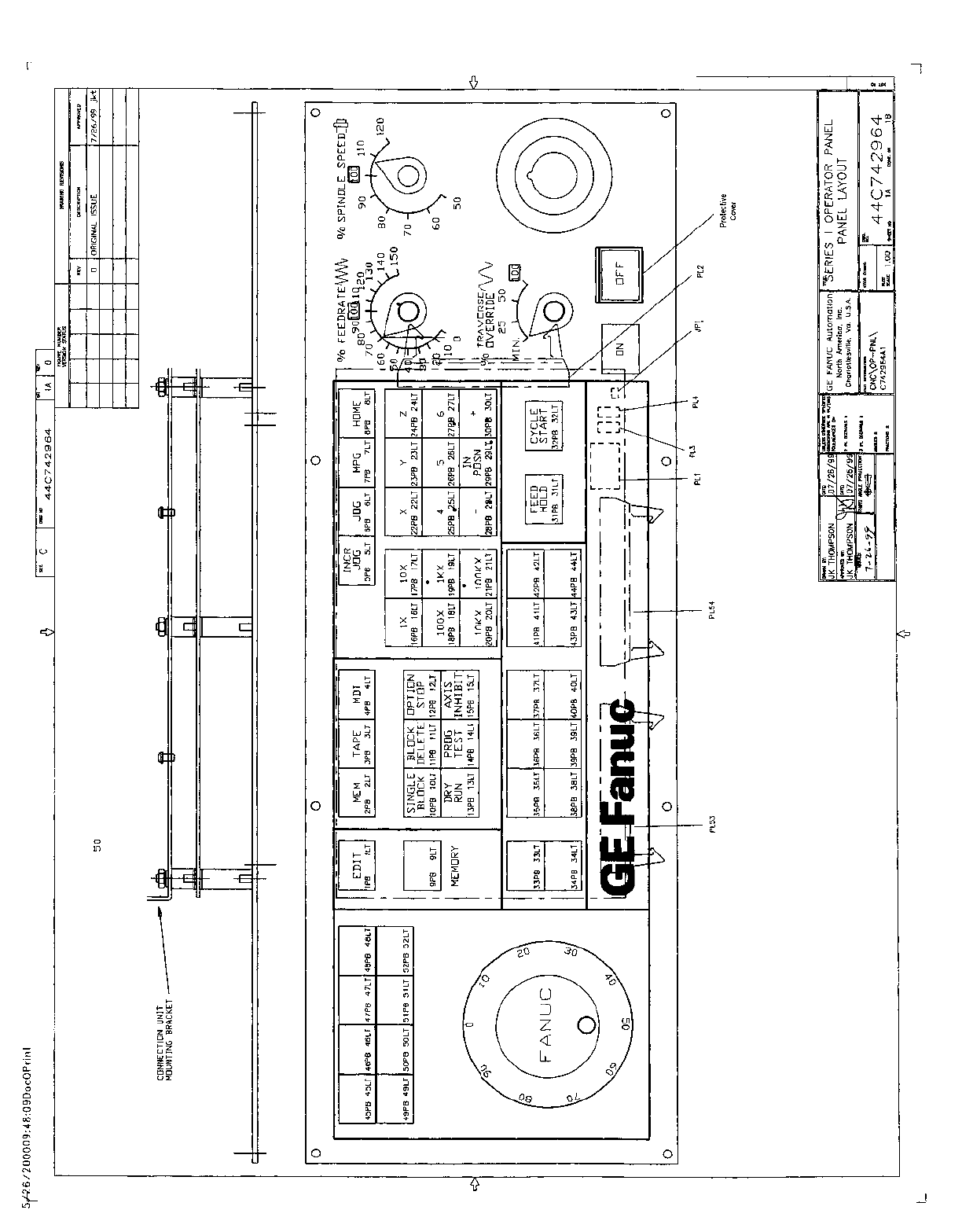 • Page 73SECTION 3: 72 IN / 56 OUT CONNECTION UNIT This section contains: • Drawing A-71199E/03 for Operator Panel Connection Unit A20B-2002-0470. Note Inputs are multiplexed. This panel must be ordered separately for use with all GE Fanuc North American i Series Operator Panels.
