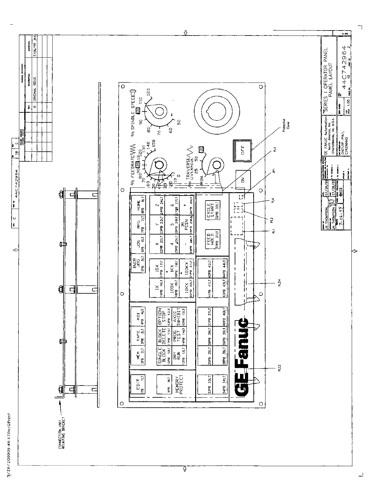 • Page 73SECTION 3: 72 IN / 56 OUT CONNECTION UNIT This section contains: • Drawing A-71199E/03 for Operator Panel Connection Unit A20B-2002-0470. Note Inputs are multiplexed. This panel must be ordered separately for use with all GE Fanuc North American i Series Operator Panels.