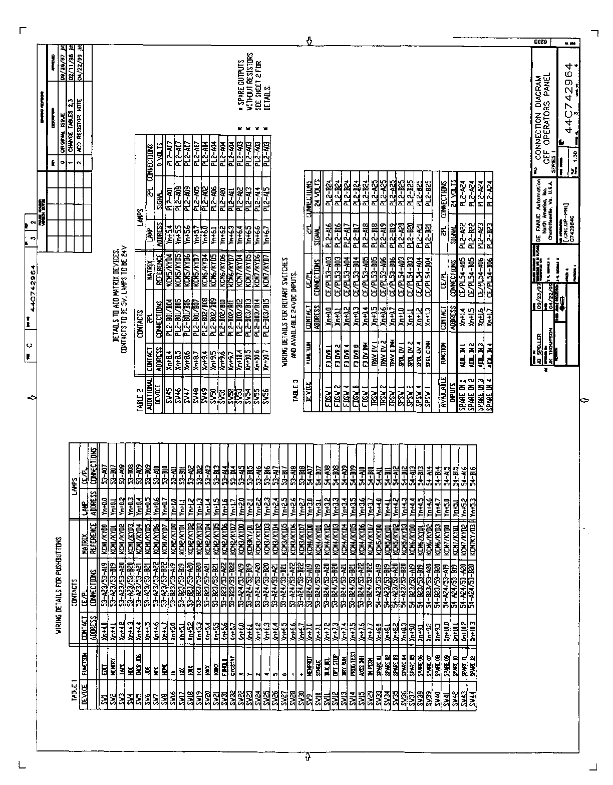• Page 73SECTION 3: 72 IN / 56 OUT CONNECTION UNIT This section contains: • Drawing A-71199E/03 for Operator Panel Connection Unit A20B-2002-0470. Note Inputs are multiplexed. This panel must be ordered separately for use with all GE Fanuc North American i Series Operator Panels.