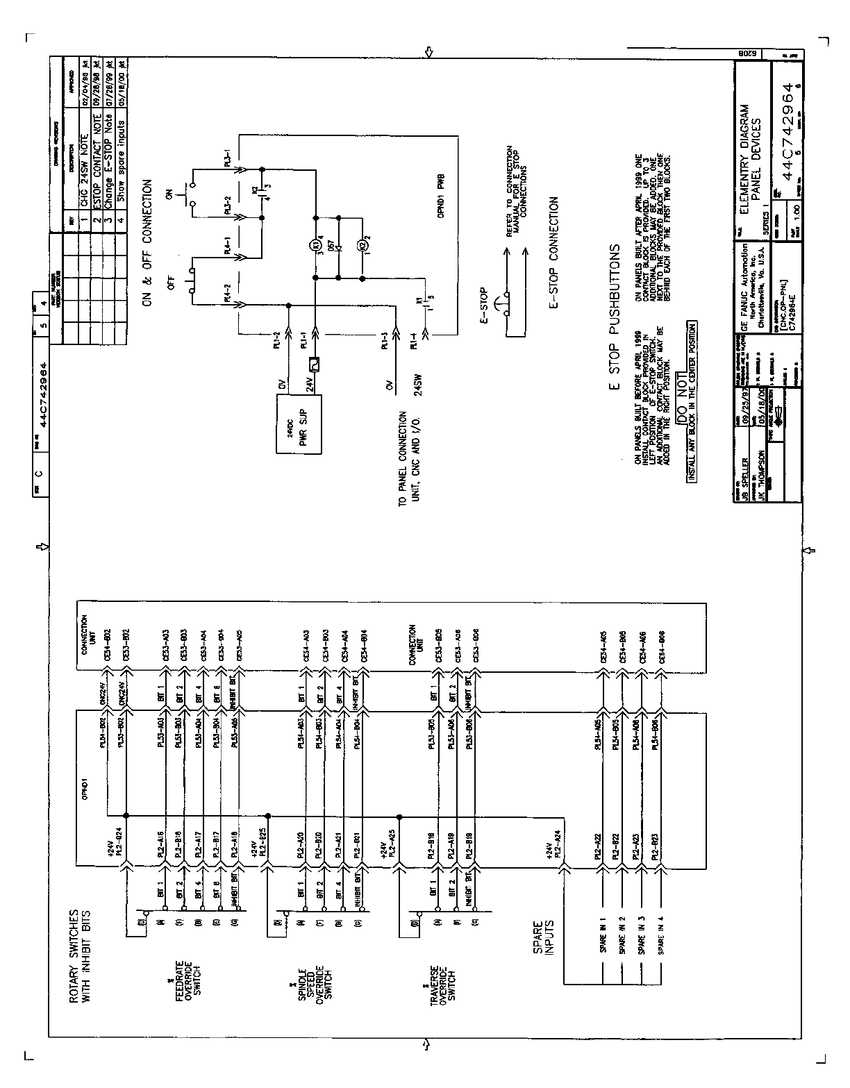 • Page 73SECTION 3: 72 IN / 56 OUT CONNECTION UNIT This section contains: • Drawing A-71199E/03 for Operator Panel Connection Unit A20B-2002-0470. Note Inputs are multiplexed. This panel must be ordered separately for use with all GE Fanuc North American i Series Operator Panels.