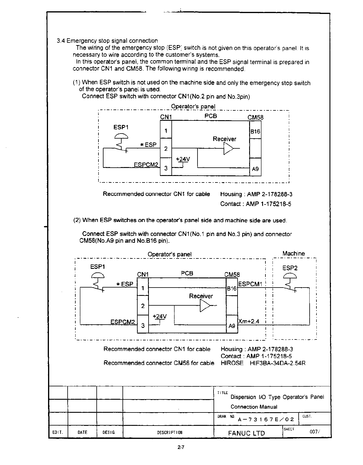 • Page 47SECTION 2: DISPERSION I/O TYPE OPERATOR PANEL This section contains: • Drawing No. A-73167E/02 for Dispersion I/O Type Operator Panels: ‰ A02B-0236-C140 (Full Keyboard). ‰ A02B-0236-C141 (Small Keyboard).