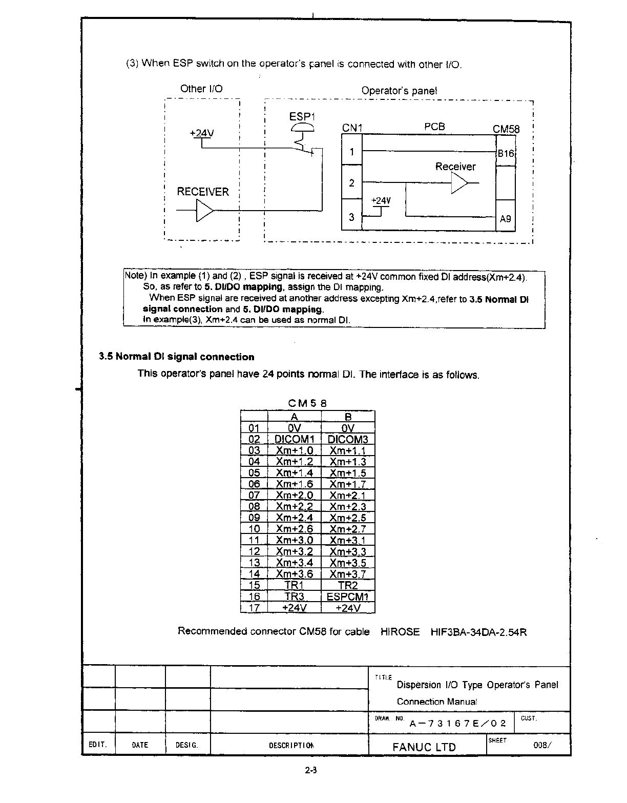 • Page 73SECTION 3: 72 IN / 56 OUT CONNECTION UNIT This section contains: • Drawing A-71199E/03 for Operator Panel Connection Unit A20B-2002-0470. Note Inputs are multiplexed. This panel must be ordered separately for use with all GE Fanuc North American i Series Operator Panels.