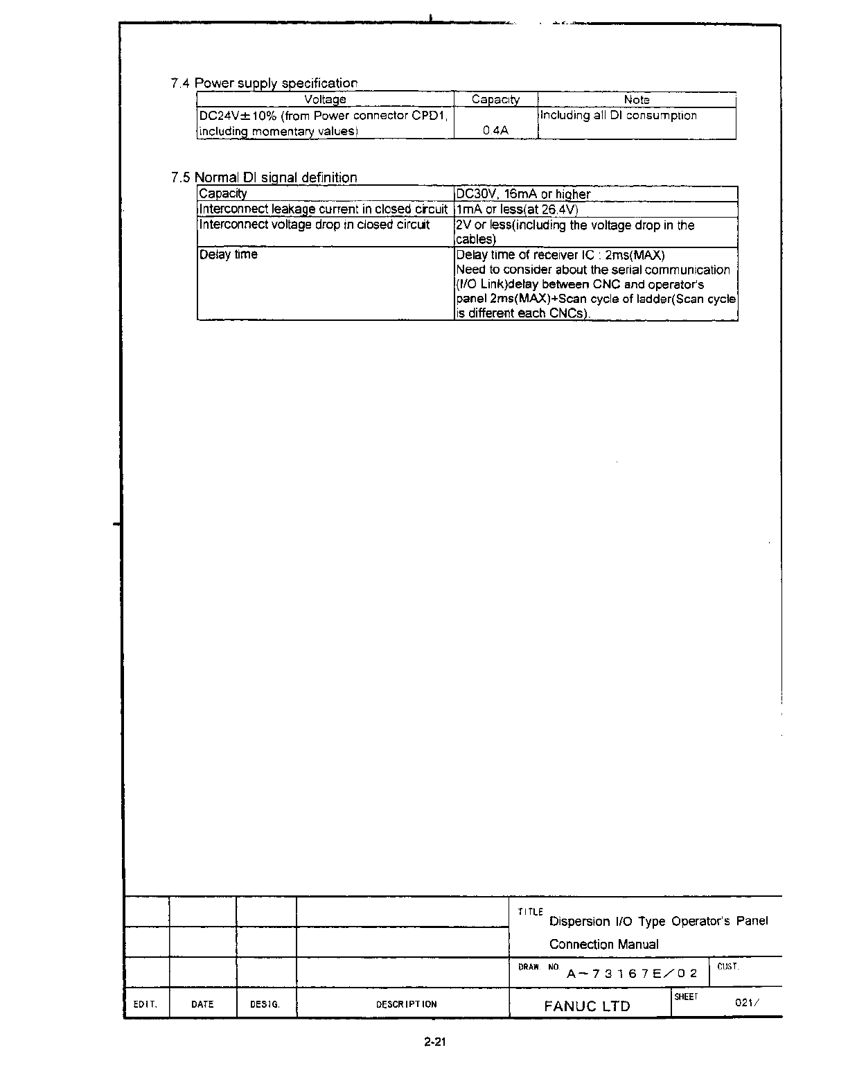 • Page 47SECTION 2: DISPERSION I/O TYPE OPERATOR PANEL This section contains: • Drawing No. A-73167E/02 for Dispersion I/O Type Operator Panels: ‰ A02B-0236-C140 (Full Keyboard). ‰ A02B-0236-C141 (Small Keyboard).