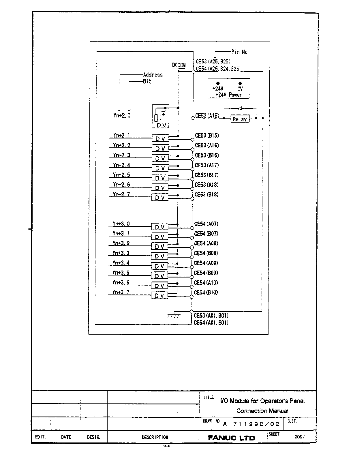 • Page 73SECTION 3: 72 IN / 56 OUT CONNECTION UNIT This section contains: • Drawing A-71199E/03 for Operator Panel Connection Unit A20B-2002-0470. Note Inputs are multiplexed. This panel must be ordered separately for use with all GE Fanuc North American i Series Operator Panels.