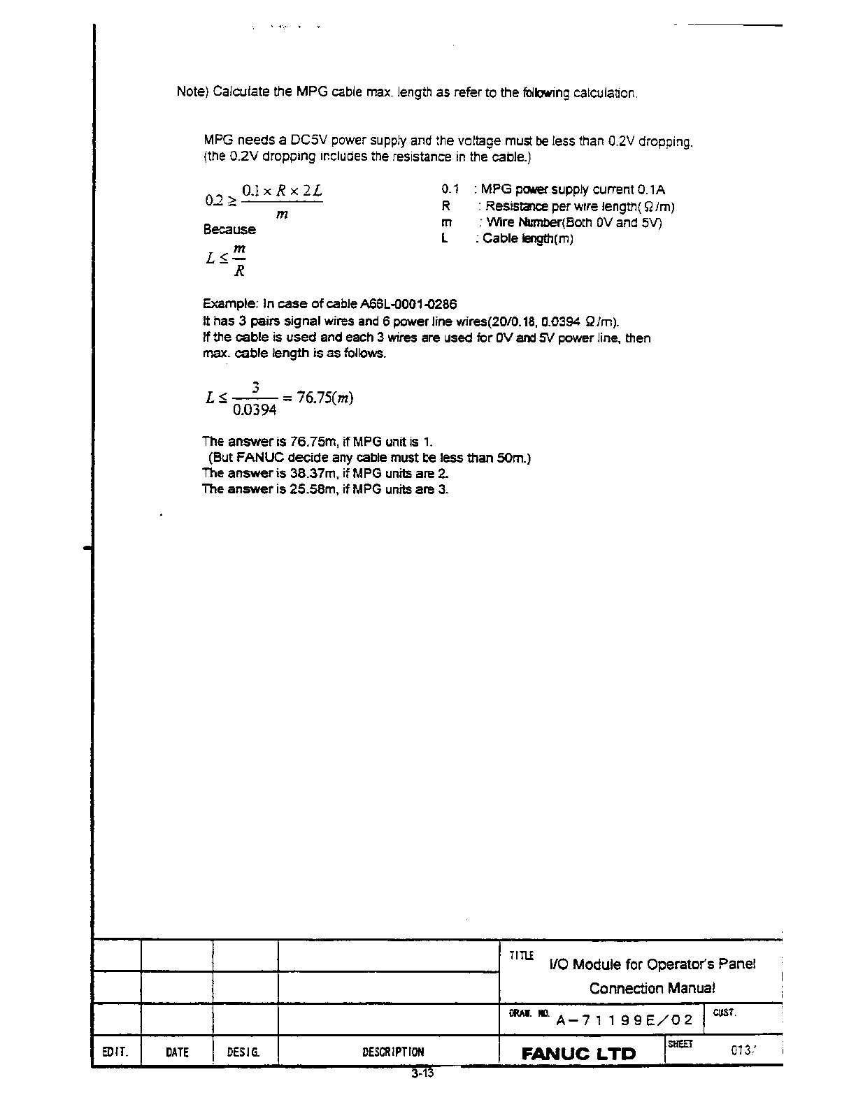 • Page 97SECTION 4: 48 / 32 POINTS I/O MODULE This section contains: • Drawing No. A-73233E/01 for I/O Modules: q A20B-2002-0520 (with MPG). q A20B-2002-0521 (without MPG). Note I/O points are not multiplexed.