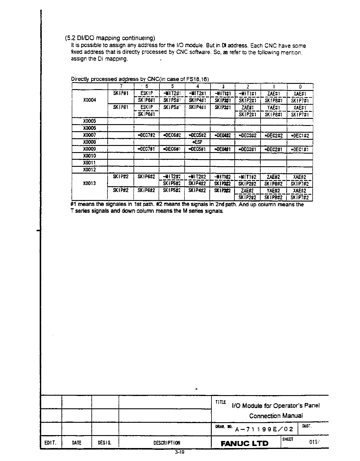 • Page 97SECTION 4: 48 / 32 POINTS I/O MODULE This section contains: • Drawing No. A-73233E/01 for I/O Modules: q A20B-2002-0520 (with MPG). q A20B-2002-0521 (without MPG). Note I/O points are not multiplexed.